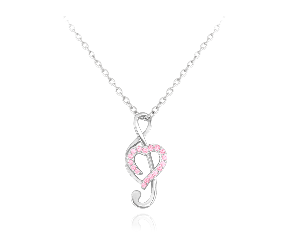 Nádherný strieborný rodiovaný náhrdelník 925/1000 v tvare husľového  kľúča s ružovými zirkónmi.
