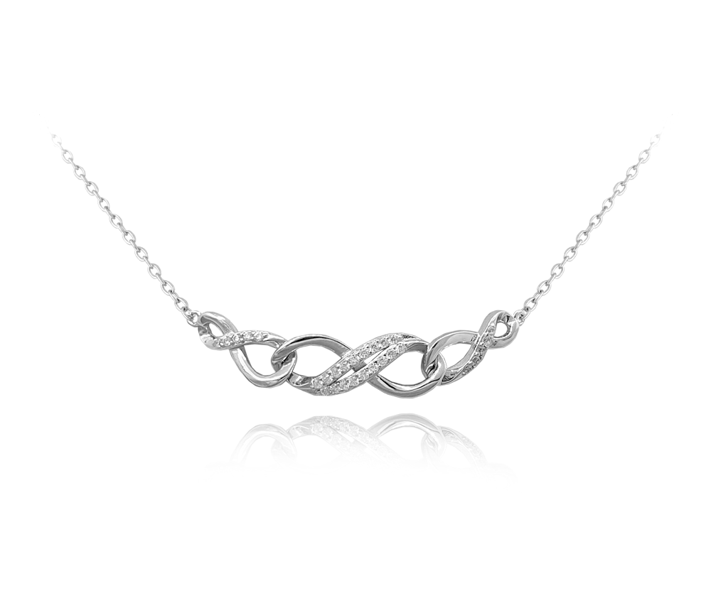 Strieborný náhrdelník v tvare nekonečno.